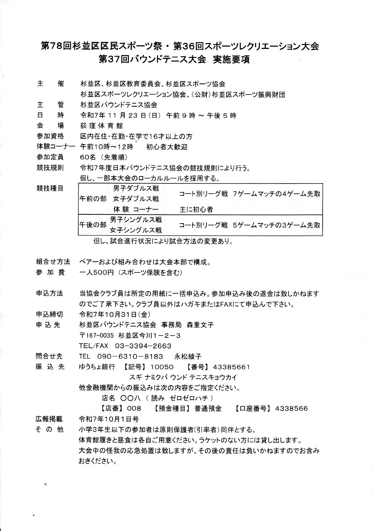 第78回区民体育祭・第36回スポーツレクリエーション大会・第37回杉並区バウンドテニス大会 〈令和7年11月30日)