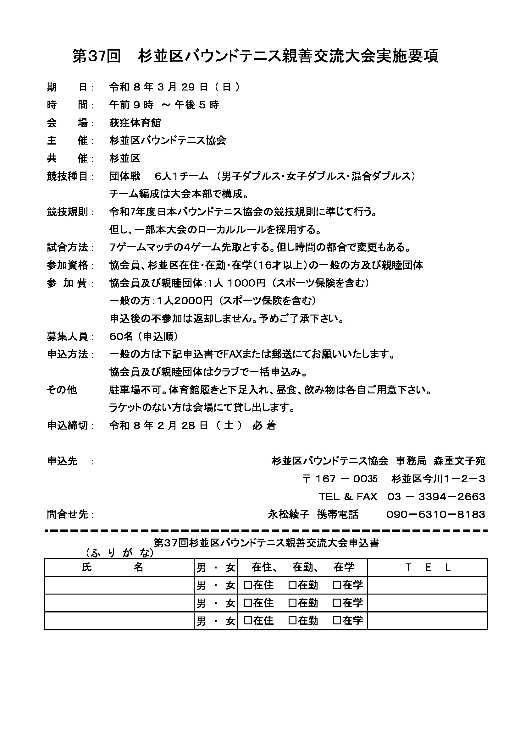 第37回杉並区バウンドテニス親善交流大会(令和8年3月29日(日)大会要項はここをクリック